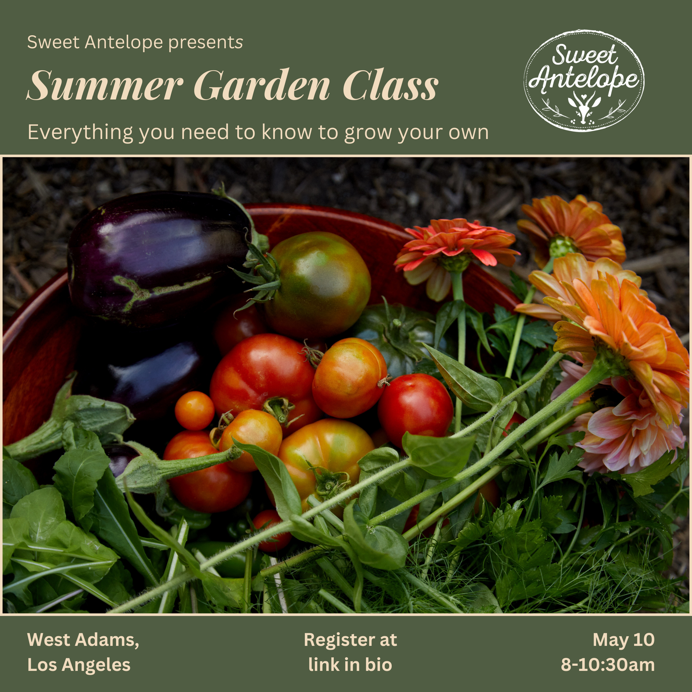 Get your hands in the dirt and learn how to wake up your garden for the season. Class is tailored to each participant to help ypu get to the next level. Includes a light breakfast at the beginning of class.